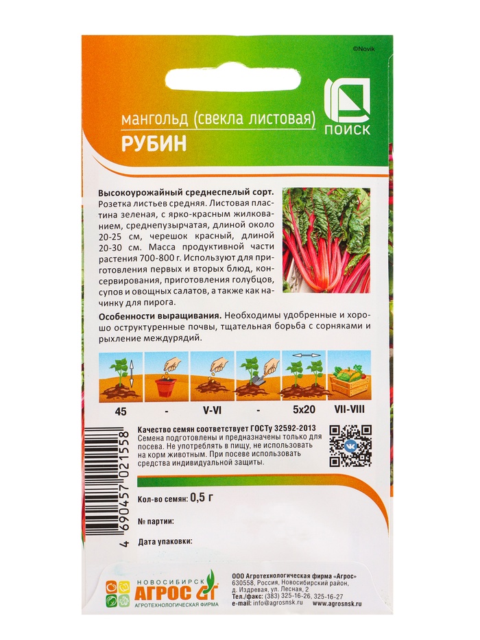 Семена Свекла "Мангольд Рубин"0,5 г — Характеристики