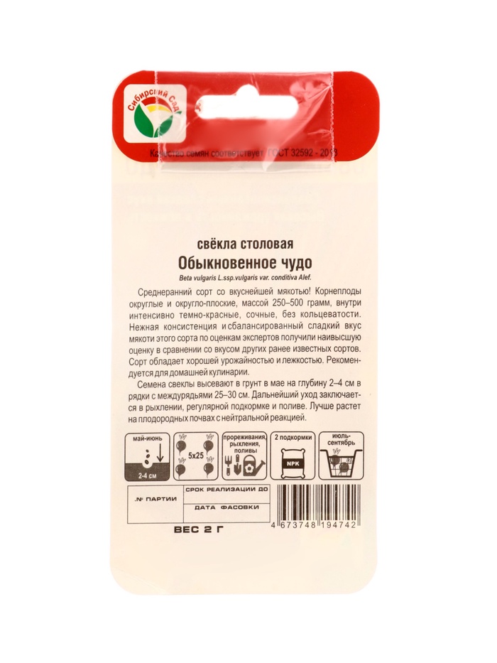 Семена Свекла Обыкновенное чудо 2г — Характеристики