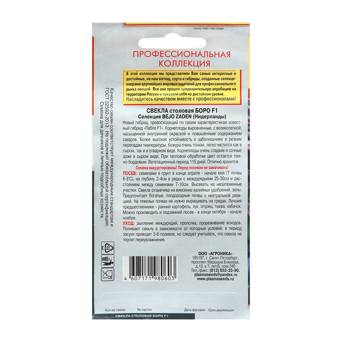 Новый гибрид, превосходящий по своим характеристикам известный гибрид «Пабло F1». Корнеплоды выровненные, с великолепной, насыщенной внутренней окраской и повышенным содержанием сахаров. Более высокая устойчивость к заболеваниям и резким перепадам температуры. Кожура очень тонкая, легко чистится как в сыром, так и в вареном виде. Корнеплоды очень сладкие и сочные даже в сыром виде. При тепловой обработке цвет остается темно-бордовым. Вегетационный период 115 дней. Отлично хранится.
