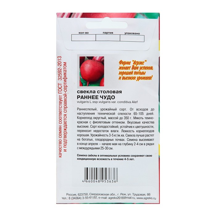 Семена Свекла "Раннее чудо", 2 г — Характеристики