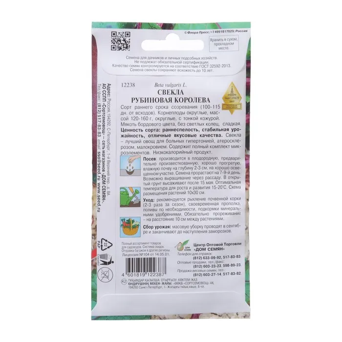 Сорт среднеранний (100-115 дн. от всх.). Корнеплоды округлые, массой 120-160 г, округлые, с тонкой кожурой. Мякоть бордового цвета, без светлых колец, сладкая. Ценность сорта: раннеспелость, стабильная урожайность, отличные вкусовые качества. Свекла – лучший овощ для больных гипертонией, атеросклерозом, малокровием. Содержит полный комплект микроэлементов. Низкокалорийный продукт. Для свежего потребления и недлительного хранения.