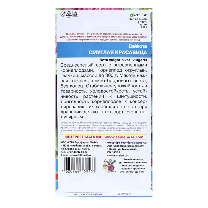 Семена Свекла "Смуглая Красавица", 2 г — Характеристики