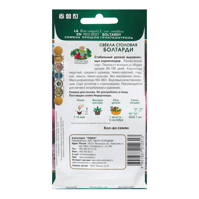 Семена Свекла столовая "Болтарди ", 2 г — Характеристики