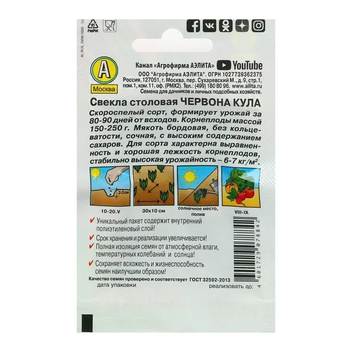 Семена Свекла столовая "Червона Кула" "Лидер", 2 гр., — Характеристики