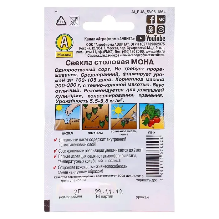 Семена Свекла столовая "Мона" "Лидер", 2 г , — Характеристики