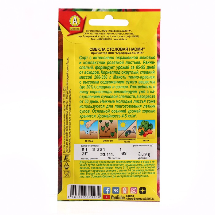 Семена Свекла столовая "Наоми", ц/п, 2 г — Характеристики