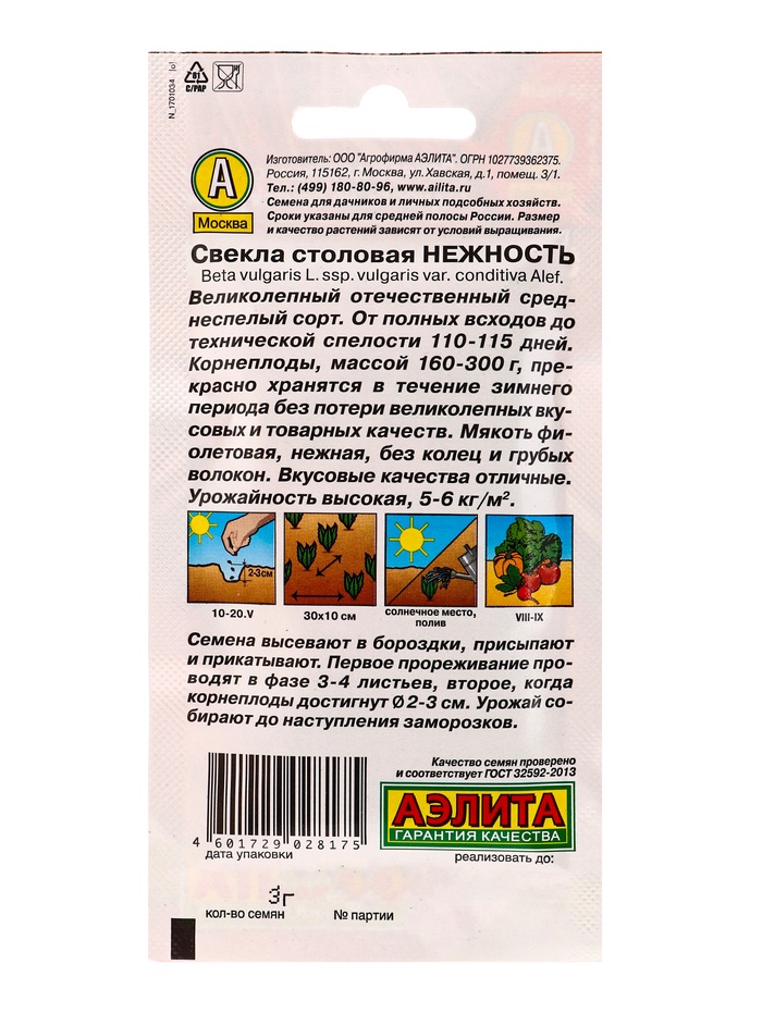 Семена Свекла столовая «Нежность», 3 г, «Агрофирма АЭЛИТА» — Характеристики