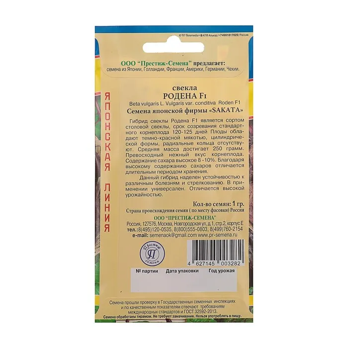Семена Свекла столовая "Родена" F1, 1 г — Характеристики