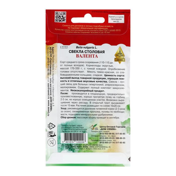 Сорт среднего срока созревания (110-115 дн. от полных всходов). Корнеплоды округлые, массой 170 - 330 г, с тонкой кожурой. Опробковение головки отсутствует. Мякоть темно-красная, со слабовыраженными кольцами, сладкая. Ценность сорта: высокий выход товарной продукции, хорошая лежкость и отличные вкусовые качества. Свекла – лучший овощ для больных гипертонией, атеросклерозом, малокровием. Содержит полный комплект микроэлементов. Низкокалорийный продукт.