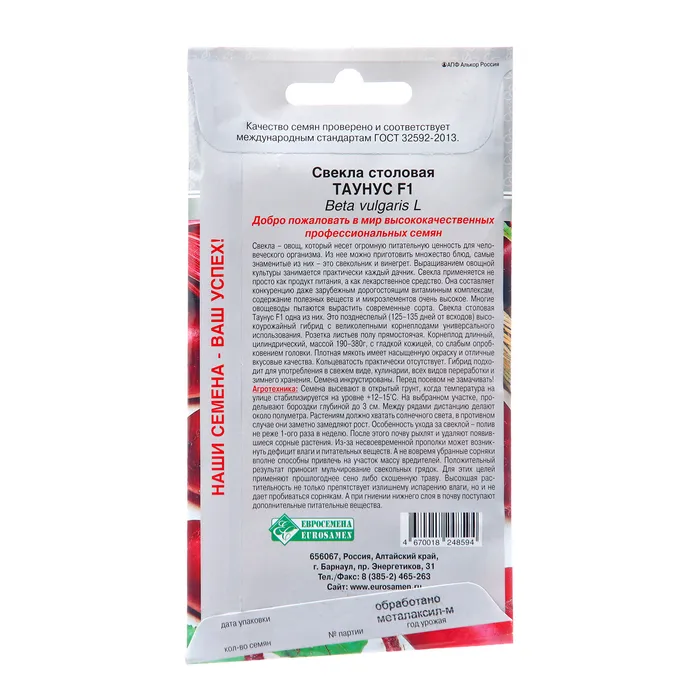 Семена Свекла "Таунус", F1, 1 гр — Характеристики