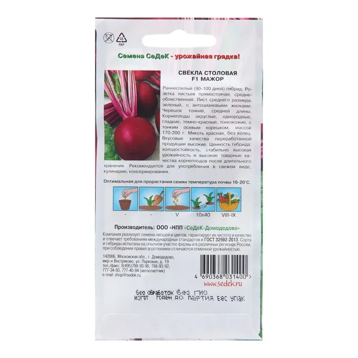Семена Свёкла "Мажор F1", 1 г — Характеристики