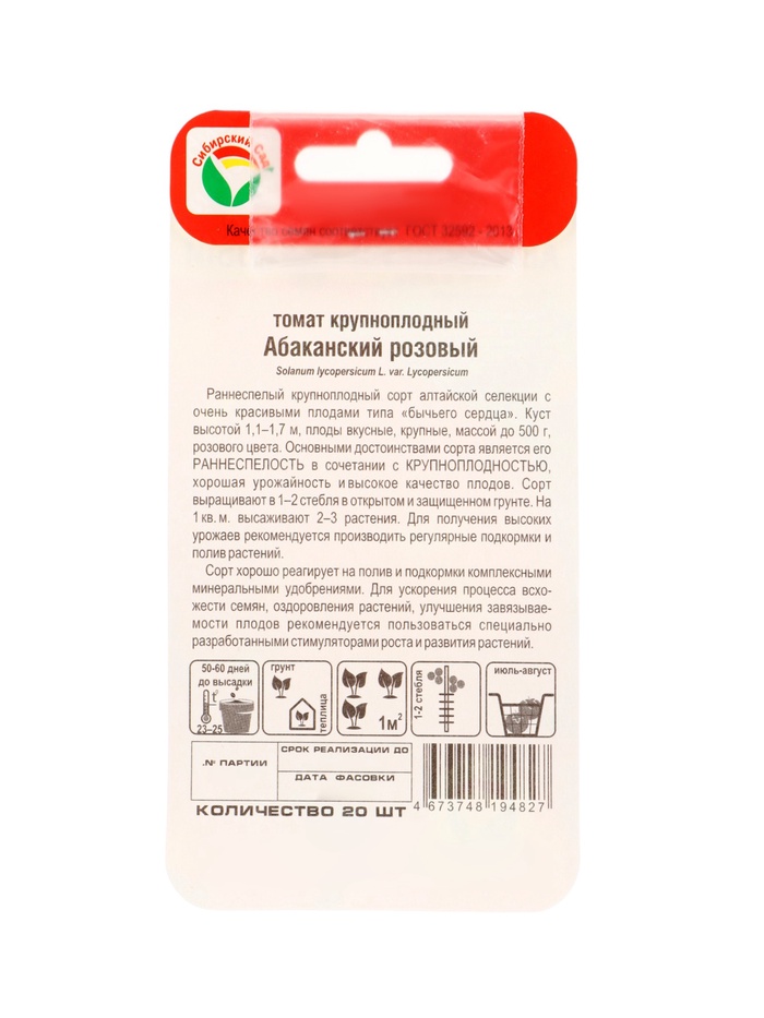 Раннеспелый крупноплодный сорт алтайской селекции с очень красивыми плодами типа "бычьего сердца". Куст высотой 1,1-1,7 м, плоды крупные, массой до 500 г, розового цвета. Основные достоинства сорта - раннеспелость в сочетании с крупноплодностью, хорошая урожайность и высокое качество плодов. Урожайность 4-5 кг/м2 Выращивают в 1-2 стебля в открытом и защищенном грунте. На 1 кв. м высаживают 2-3 растения.