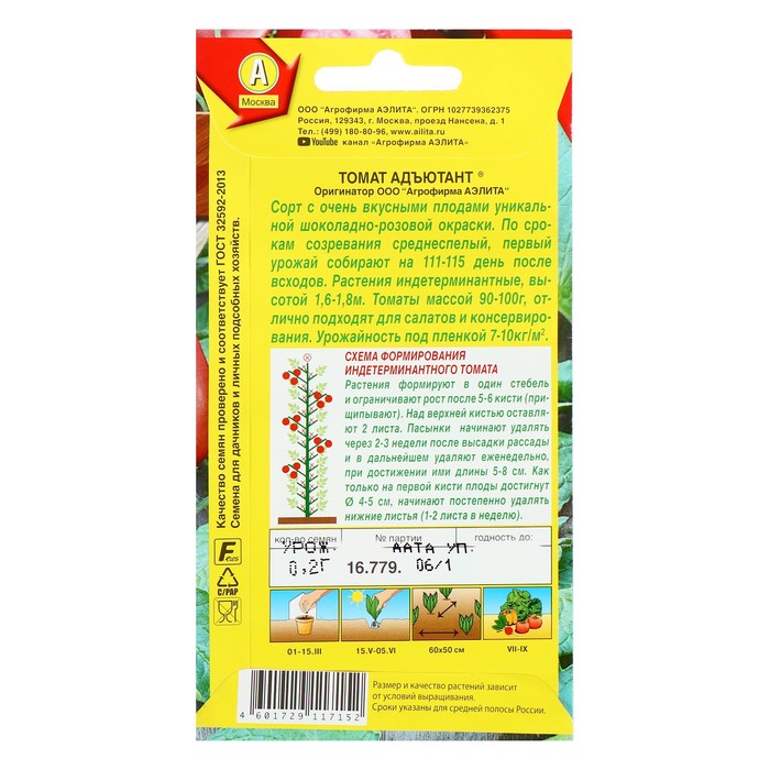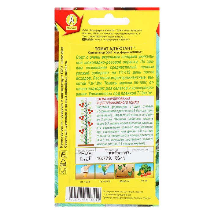 Семена Томат "Адъютант", среднеспелый, 0,2 г — Характеристики