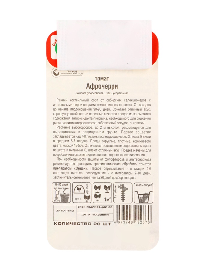 Семена Томат «Афрочерри», 20 шт., «Сибирский сад» — Характеристики