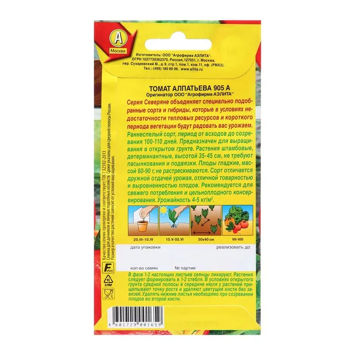 Семена Томат Алпатьева 905 А Ор. А Р Северяне Ц/П 0,2г — Характеристики