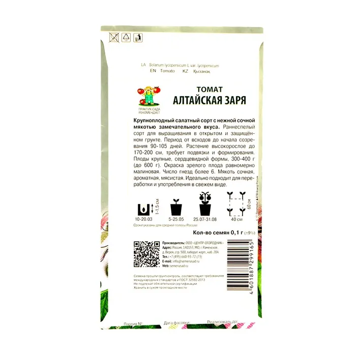 Семена Томат "Алтайская Заря", 0,1 г — Характеристики