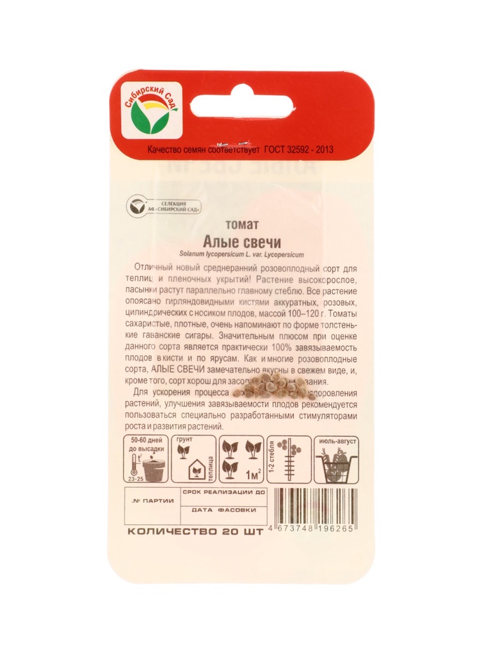 Семена Томат «Алые свечи», 20 шт., «Сибирский сад» — Характеристики