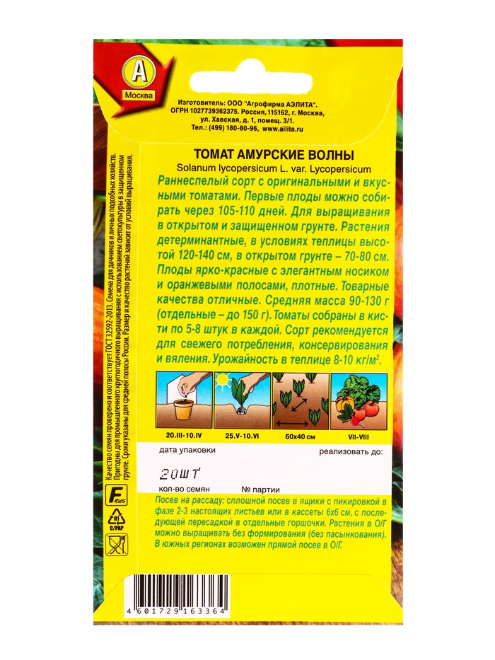 Семена Томат «Амурские волны», 20 шт., «Агрофирма АЭЛИТА» — Характеристики
