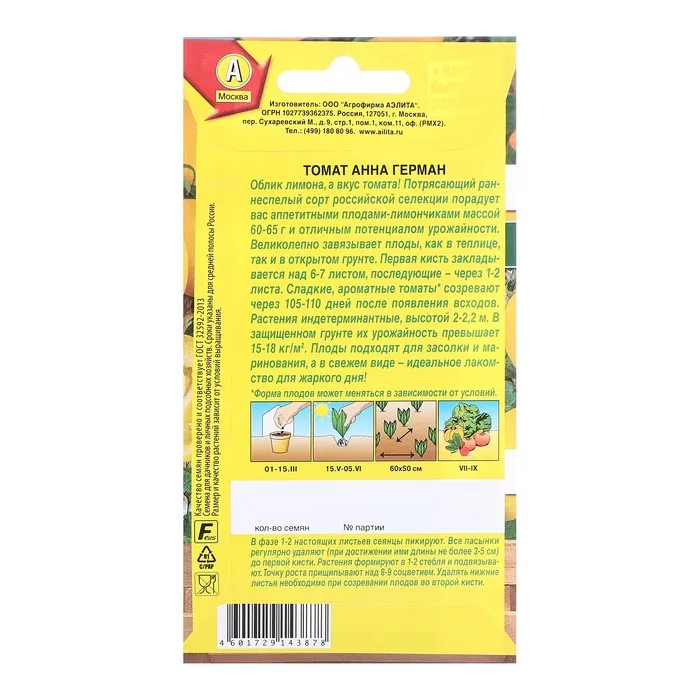 Семена Томат Анна Герман Р Народный любимец Ц/П 20шт — Характеристики