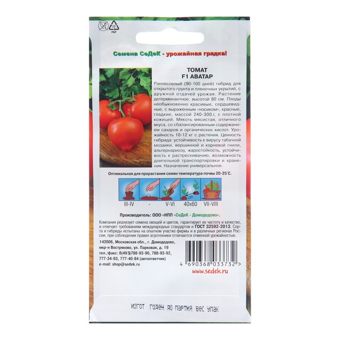 Семена Томат "Аватар F1", 0,05 г — Характеристики