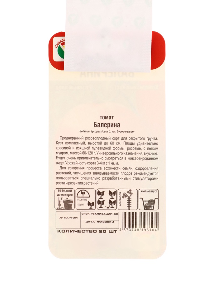 Семена Томат «Балерина», 20 шт., «Сибирский сад» — Характеристики