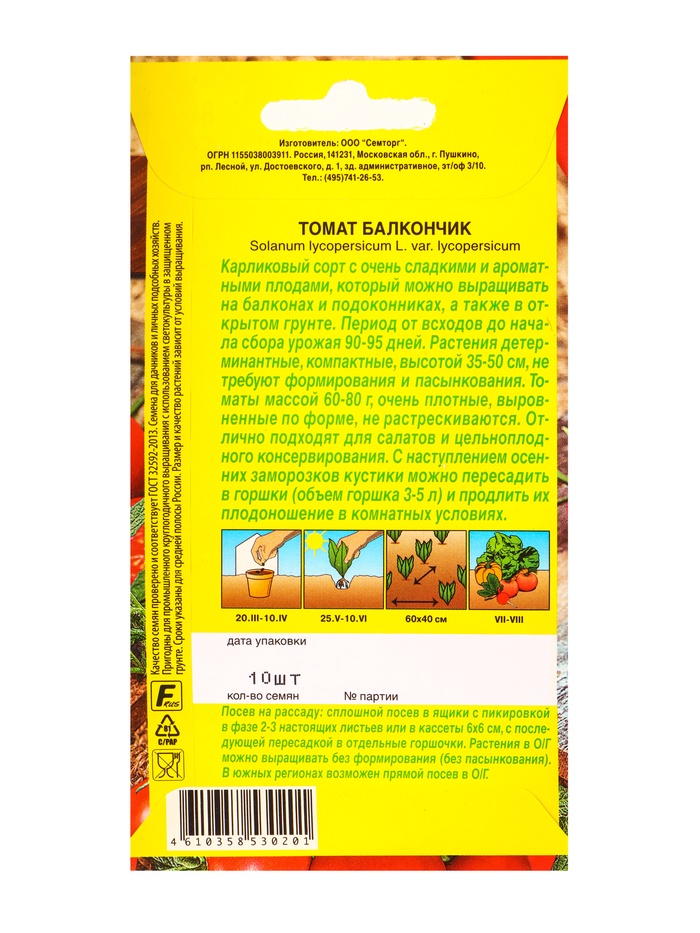 Семена Томат «Балкончик», «Семторг - АЭЛИТА», 10 шт. — Характеристики