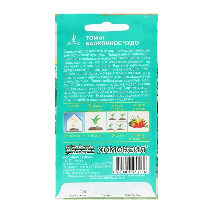 Семена Томат "Балконное чудо" ультраскороспелый, детерминантный, низкорослый, 15 шт — Характеристики