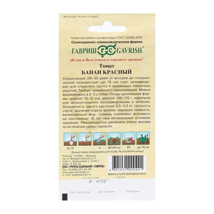 Семена Томат "Банан красный", 0,05 г — Характеристики