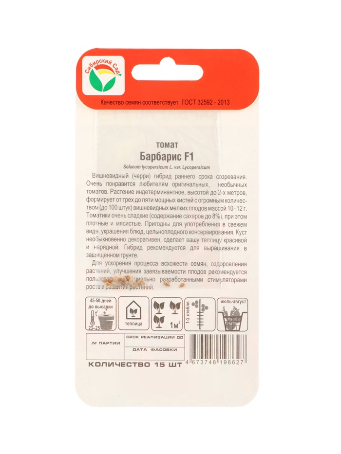 Семена Томат «Барбарис», F1, 15 шт., «Сибирский сад» — Характеристики