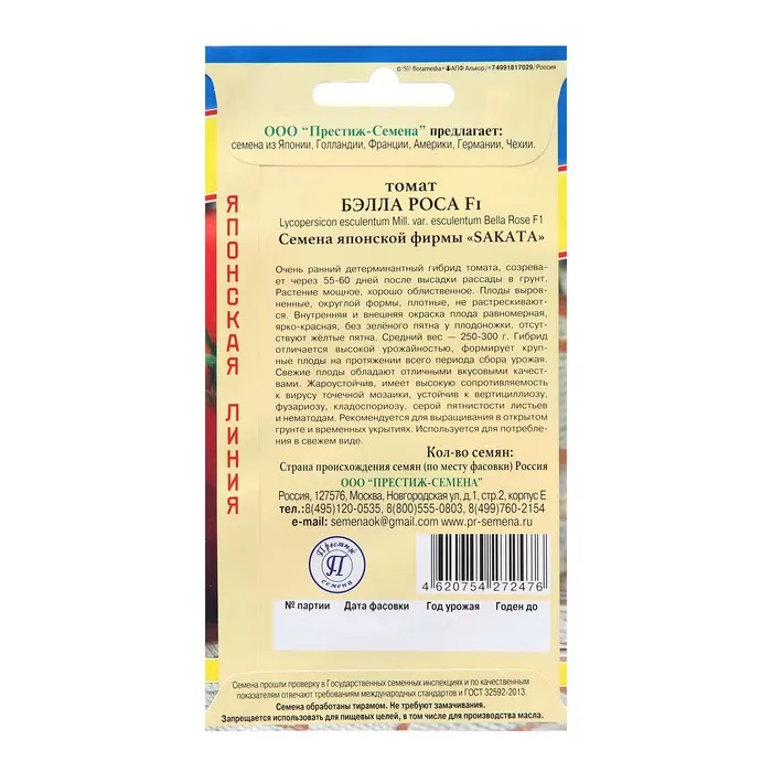Семена Томат "Бэлла Роса F1", ц/п, 5 шт. — Характеристики