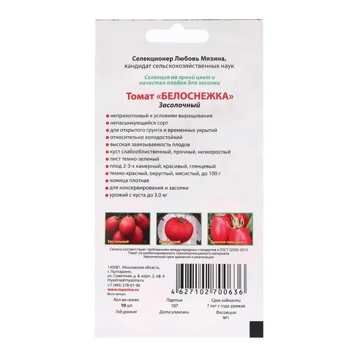 Сорт ранний (85-95 дней от всходов до плодоношения). Предназначен для выращивания в открытом грунте и под временными укрытиями. Возраст рассады для высадки на постоянное место: 50-55 дней. Растение среднеоблиственное, высотой 45-50 см, не пасынковать. Плоды округлые, гладкие, плотные, массой до 90 г, ярко-красные, ароматные, не растрескиваются. Благодаря скороспелости и дружному созреванию (при отсутствии долгих низких ночных температур) чаще всего избегает фитофтороза. При соблюдении агротехники урожайность с куста кг 2,0-3.0. Схема посадки 40х40. Предназначен для потребления в свежем виде, переработки, консервирования, засолки. Восприимчивость к болезням средняя, отличается экологической пластичностью.