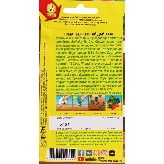 Семена Томат "Беркли тай дай хаат", ц/п, 20 шт — Характеристики