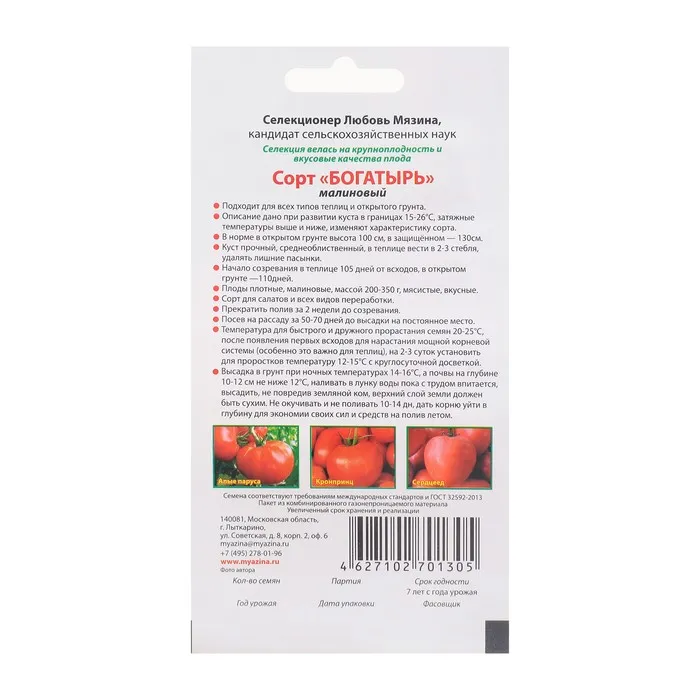 Семена Томат "Богатырь малиновый", 0,02 гр — Характеристики