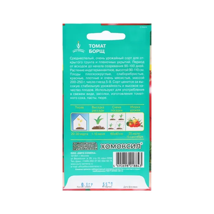 Томаты высокоурожайного сорта «Борщ» созревают в течение 100 дней. Индетерминантное растение подходит для открытого грунта и современных плёночных укрытий.