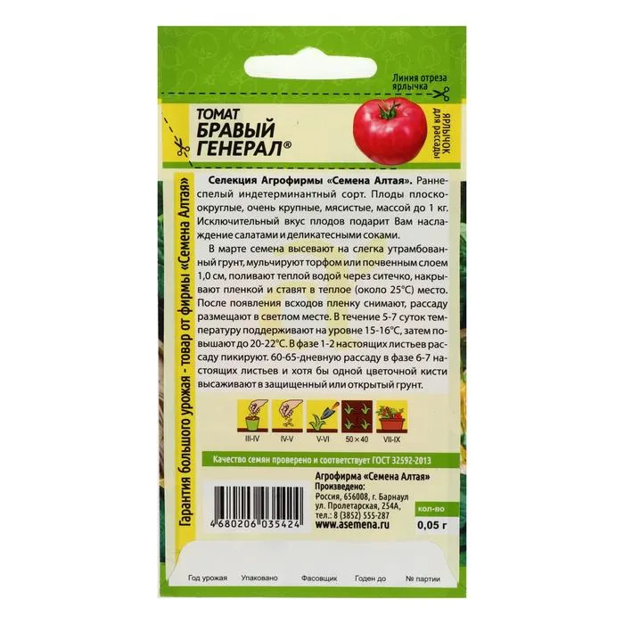 Семена Томат "Бравый Генерал", индетерминантный, 0,05 г