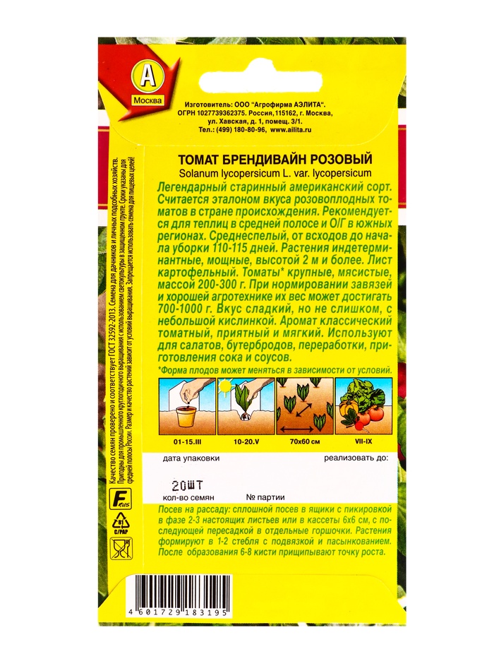 Семена Томат «Брендивайн розовый», «Мировая коллекция - АЭЛИТА», 20 шт. — Характеристики