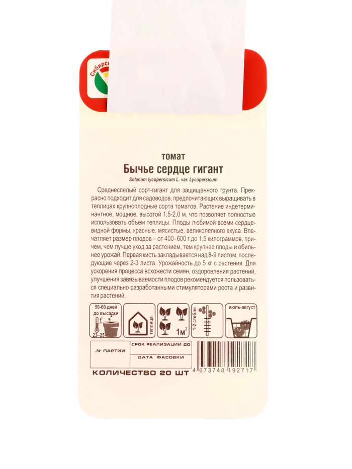Семена Томат «Бычье сердце гигант», 20 шт., «Сибирский сад»