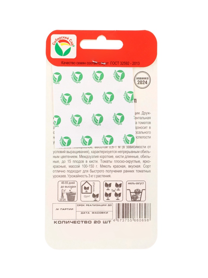 Семена Томат «Быстроспел-Скорострел», 20 шт., «Сибирский сад» — Характеристики