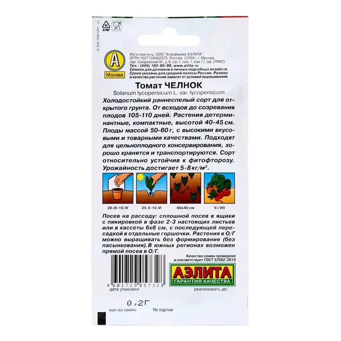 «Челнок» — это раннеспелый сорт, у которого период от всходов до созревания плодов составляет 82–110 дней. Устойчив к поражению фитофторозом. Подходит для открытого грунта. Урожайность составляет 5–8 кг/м².
