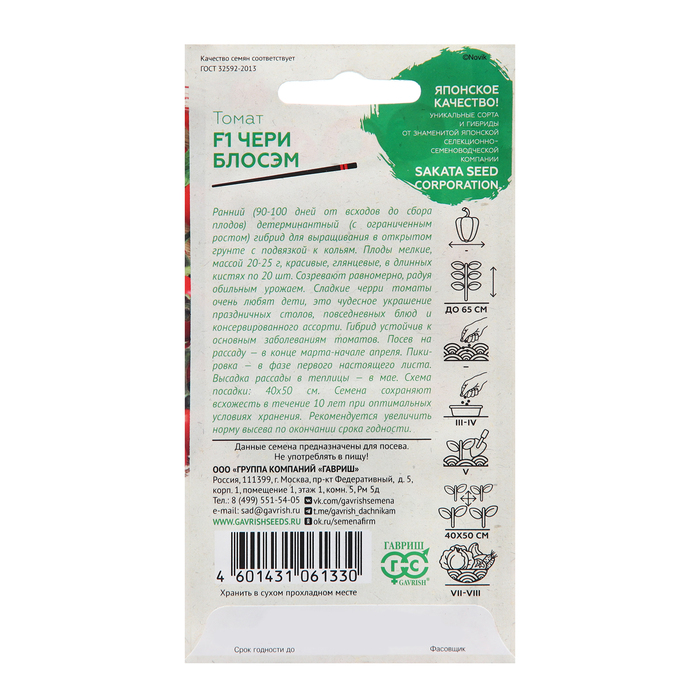 Семена Томат "Чери Блосэм", F1, 8 шт. — Характеристики
