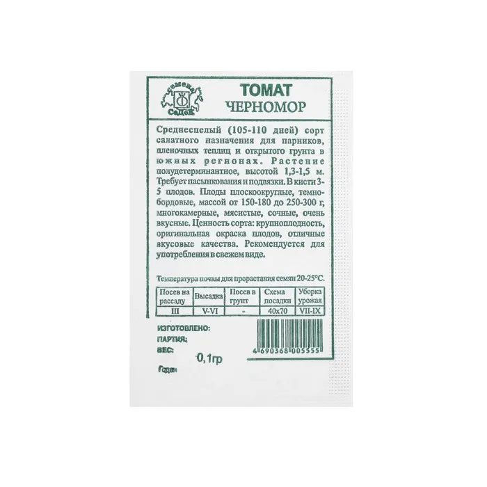 Урожайный крупноплодный сорт среднего срока созревания. От всходов до плодоношения 115-120 дней. Растение детерминантное, высотой 1,5-1,7 м, требующее подвязывания и пасынкования.