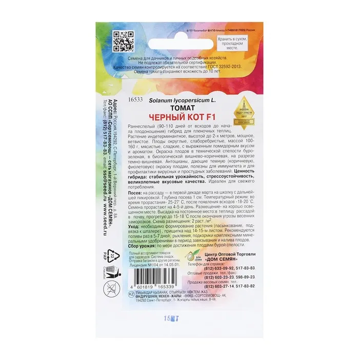 Полезные темные плоды, высокое содержание ликопина. Раннеспелый гибрид. Предназначен для выращивания в защищенном и открытом грунте с подвязкой к опоре. Первое соцветие закладывается над 7-9 листом, последующие через 3 листа.