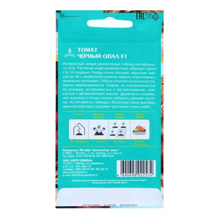 Интересный новый раннеспелый гибрид коктейльного типа. Растение индетерминантное, образует кисти с 8-12 плодами. Плоды очень плотные, округлые, массой до 45 г, необычной окраски: красно-коричневые с зелеными полосами. Гибрид отличается высокой степенью завязываемости плодов, их выровненностью по размеру, устойчивостью к растрескиванию, лежкостью и великолепным вкусом. Дружность созревания высокая и плоды можно собирать целыми кистями. Устойчивость гибрида к болезням очень высокая, даже фитофтороз поражает растение очень слабо.