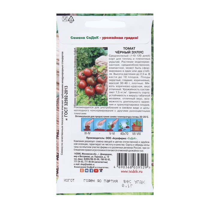 Среднеспелый (110-120 Дней) сорт для теплиц и пленочных укрытий. Растение индетерминантное, среднеоблиственное, компактное, может быть сформировано в один или два стебля. Высота растения до 2,5м. В кисти до 10 плодов. Плоды округлые, гладкие, коричневые, массой 30-40г, плотные, Мякоть коричнево красная, вкус отличный. Урожайность составляет 7.5 кг на квадратный метр.