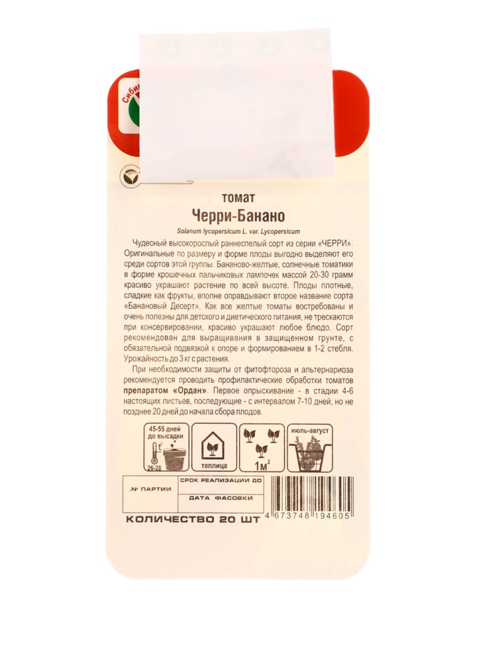 Семена Томат «Черри Банано», 20 шт., «Сибирский сад» — Характеристики