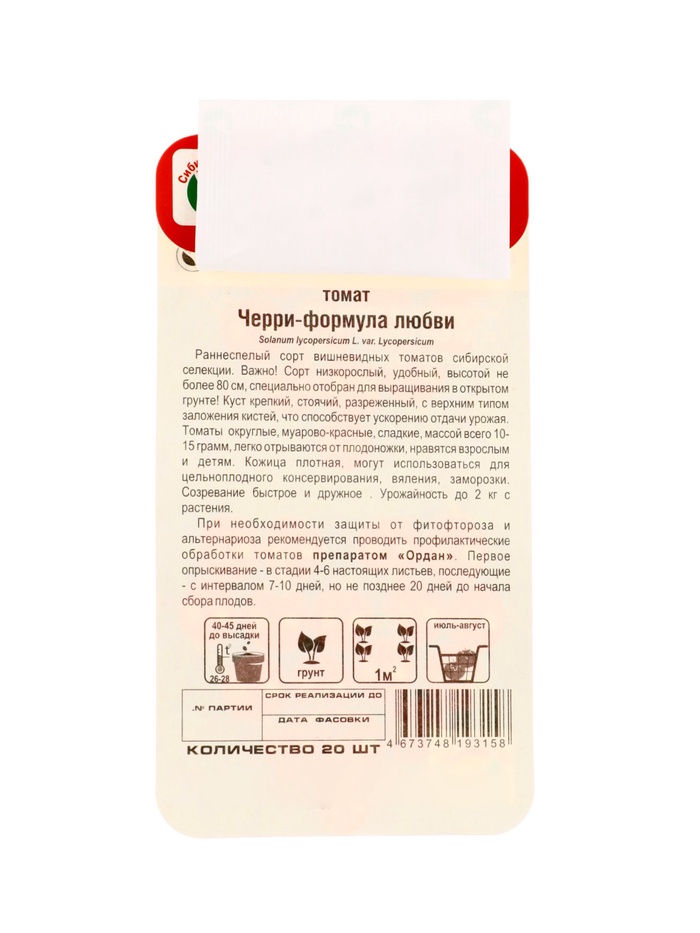 Семена Томат Черри «Формула любви», 20 шт., «Сибирский сад» — Характеристики