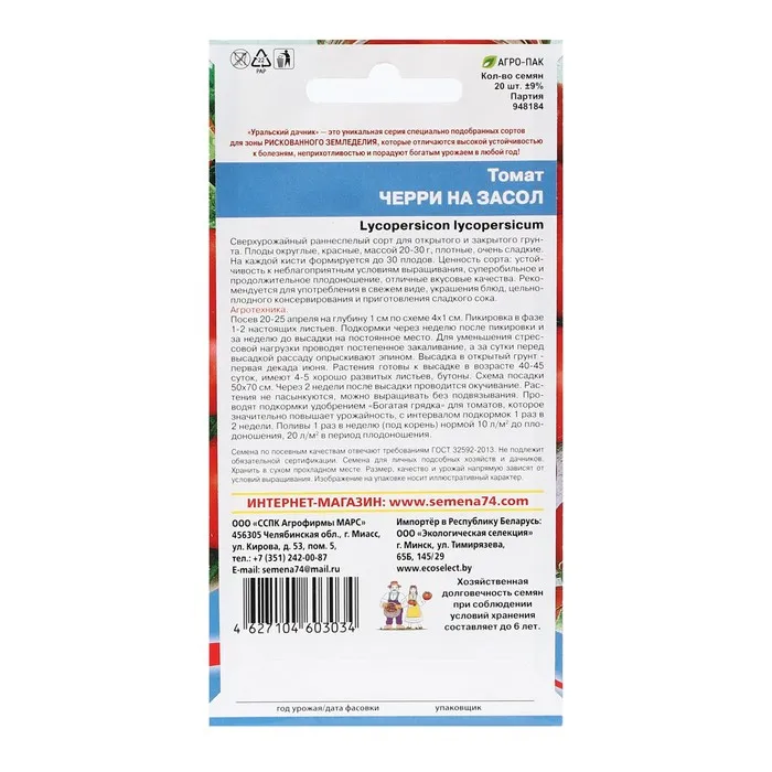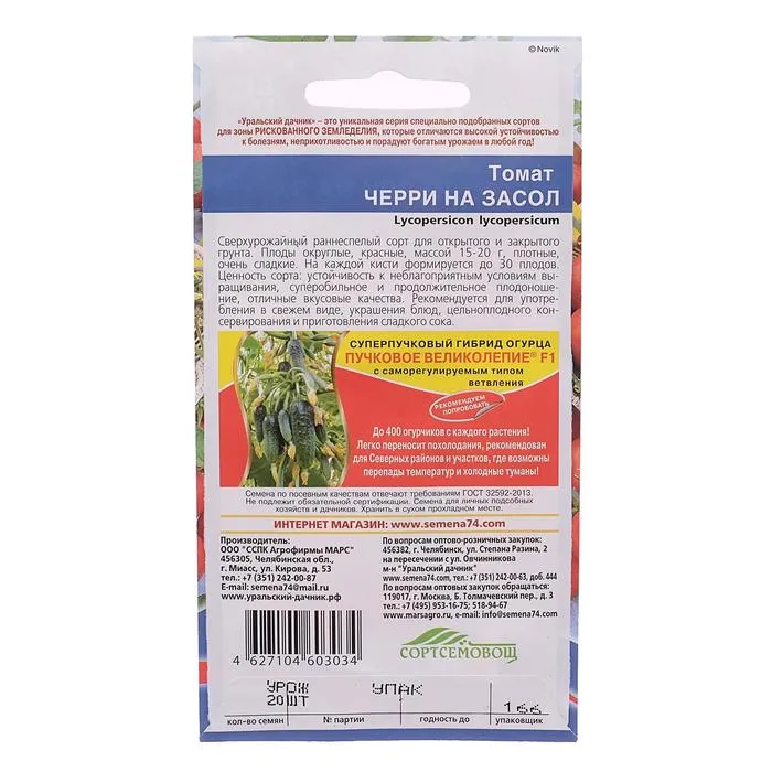 Сверхурожайный раннеспелый сорт для открытого и закрытого грунта. Плоды округлые, красные, массой 15-20 г, плотные, очень сладкие. На каждой кисти формируется до 30 плодов.