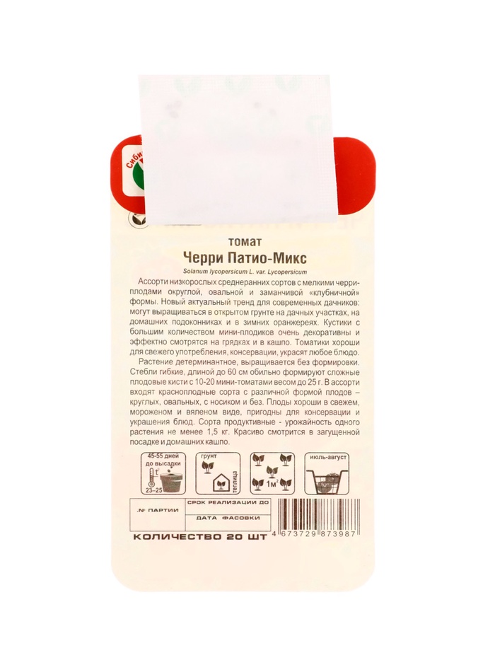 Семена Томат «Черри патио микс», 20 шт., «Сибирский сад» — Характеристики