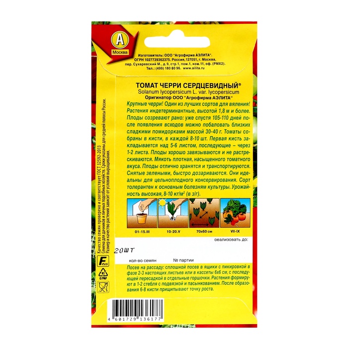 Семена Томат "Черри сердцевидный", ц/п, 20 шт — Характеристики
