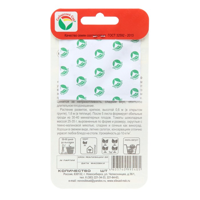Скороспелый, сладкий, 100% сибирский! Темноплодный скороспелый черри-сорт селекции АФ «Сибирский сад», на 100% приспособленный к сибирским условиям. Устойчив к основным заболеваниям.Растение развитое,крепкое,высотой 0,6м (в открытом грунте), 1,6м (в теплице). После 5 листа формирует обильные грозди из 30-40 миниатюрных плодов. Томаты массой 25-35г, выровненные по форме и размеру, округлые с темно-малиновой мякотью, сладкие и сочные как виноград.